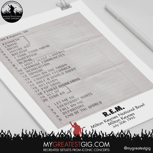 REM - Milton Keynes - Jul 30th 1995 Recreated Setlist Poster