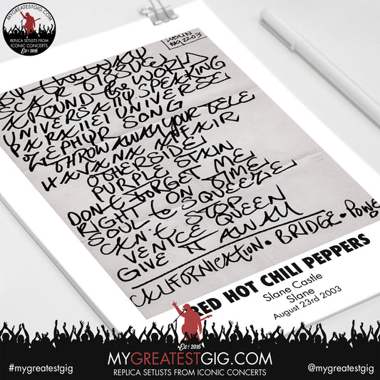 Red Hot Chili Peppers - Slane Castle - August 23rd 2003 Recreated Setlist Poster