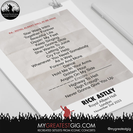 Rick Astley - Royal Albert Hall - November 2nd 2023 Recreated Setlist Poster