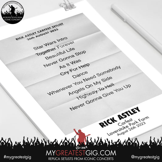 Rick Astley - Carfest - August 26th 2023 Replica Setlist Poster
