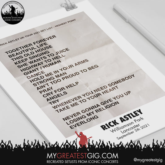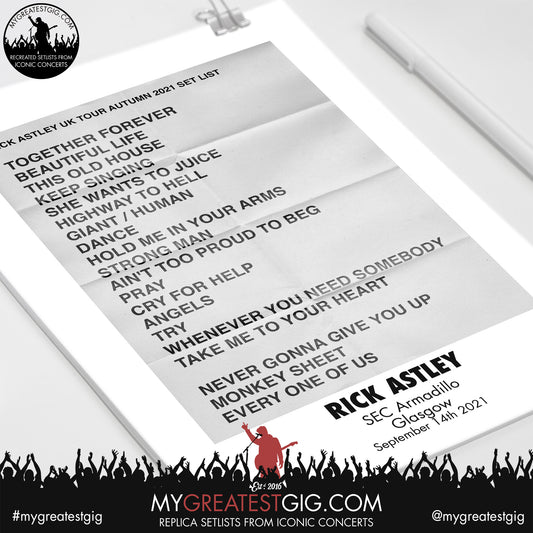 Rick Astley - Glasgow - September 14th 2021 Replica Setlist Poster