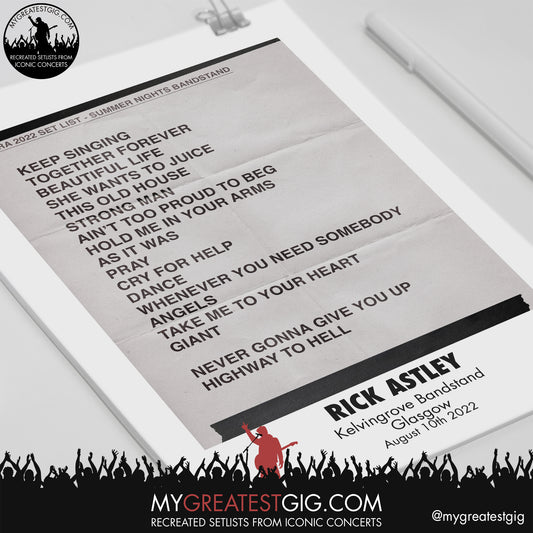 Rick Astley - Glasgow - August 10th 2022 Replica Setlist Poster
