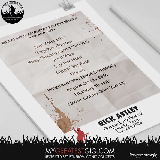 Rick Astley - Glastonbury Festival - June 24th 2023 Recreated Setlist Poster