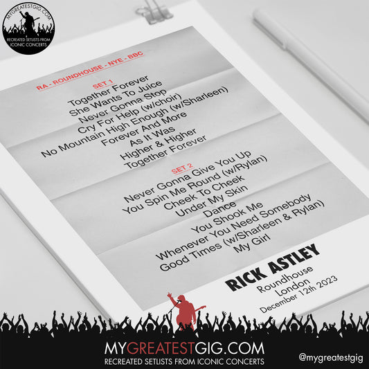 Rick Astley - London - December 12th 2023 Recreated Setlist Poster