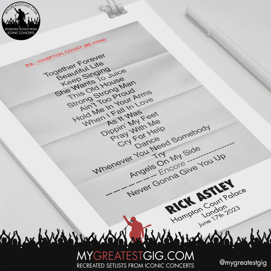 Rick Astley - London - June 17th 2023 Replica Setlist Poster
