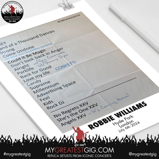 Robbie Williams - BST Hyde Park - July 6th 2024 Replica Setlist Poster