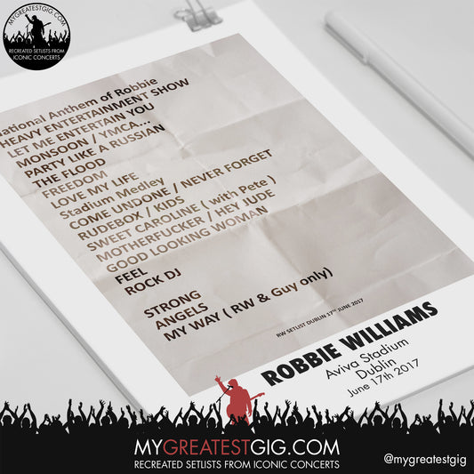 Robbie Williams - Dublin - June 17th 2017 Recreated Setlist Poster