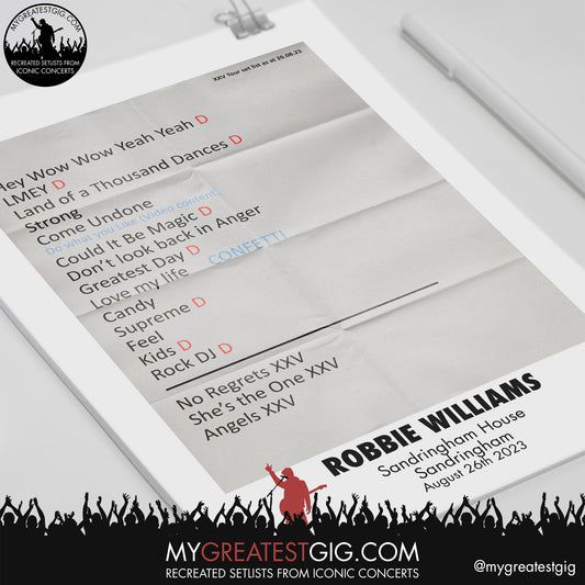 Robbie Williams - Sandringham - August 26th 2023 Recreated Setlist Poster