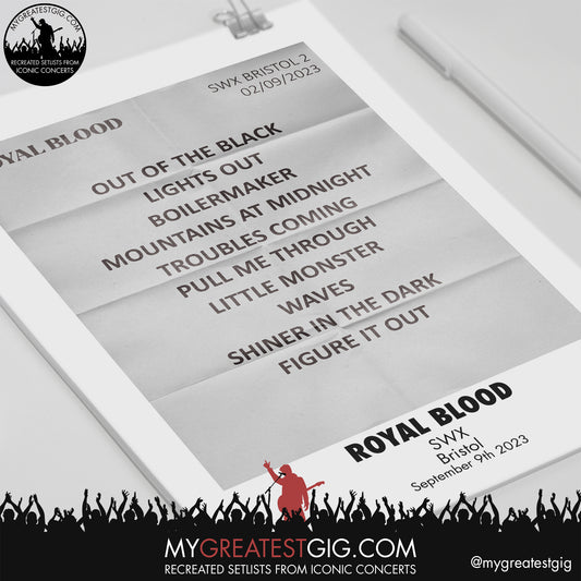 Royal Blood - Bristol - September 9th 2023 Recreated Setlist Poster