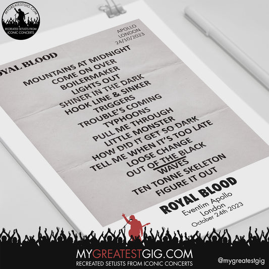 Royal Blood - London - October 24th 2023 Recreated Setlist Poster