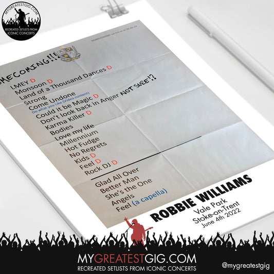 Robbie Williams - Stoke-on-Trent - Jun 4th 2022 Recreated Setlist Poster