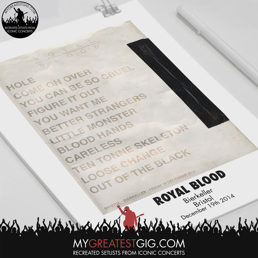 Royal Blood - Bristol - Dec 19th 2014 Recreated Set List Poster