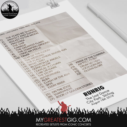 Runrig - Stirling - Aug 18th 2018 Recreated Set List Poster