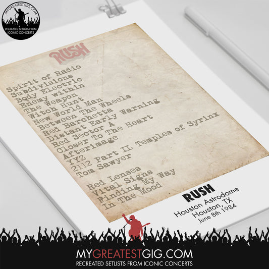 Rush - Houston - Jun 8th 1984 Recreated Set List Poster