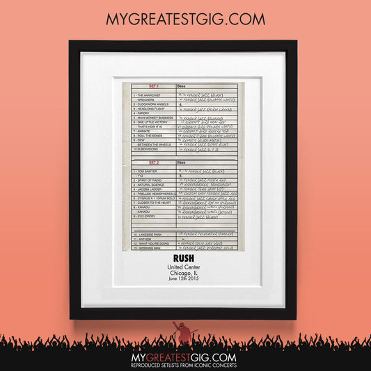 Rush - Chicago - Jun 12th 2015 Recreated Set List Poster