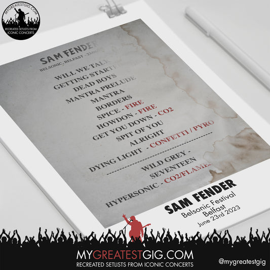 Sam Fender - Belsonic Festival - June 23rd 2023 Recreated Setlist Poster