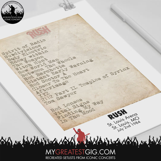 Rush - St. Louis - Jul 2nd 1984 Recreated Set List Poster