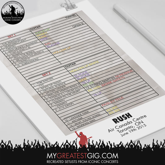 Rush - Toronto - Jun 19th 2015 Recreated Set List Poster