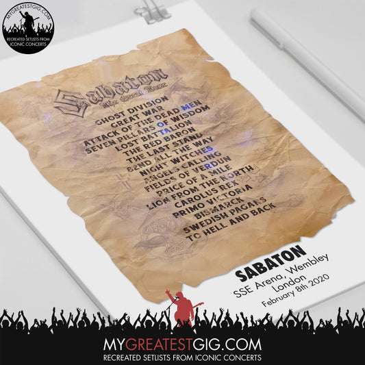 Sabaton - London - Feb 8th 2020 Recreated Set List Poster