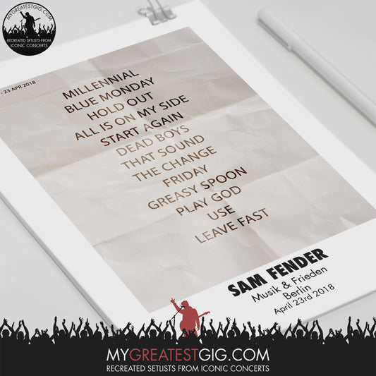 Sam Fender - Berlin - Apr 23rd 2018 Recreated Setlist Poster