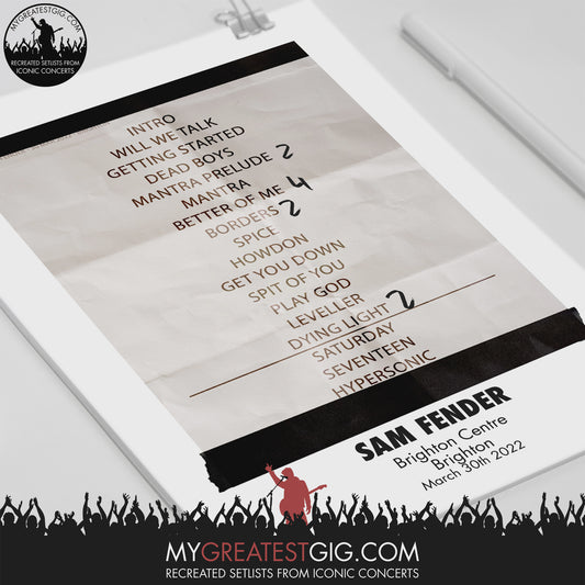Sam Fender - Brighton - Mar 30th 2022 Recreated Setlist Poster