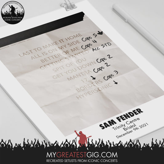 Sam Fender - Bristol - Dec 9th 2021 Recreated Setlist Poster