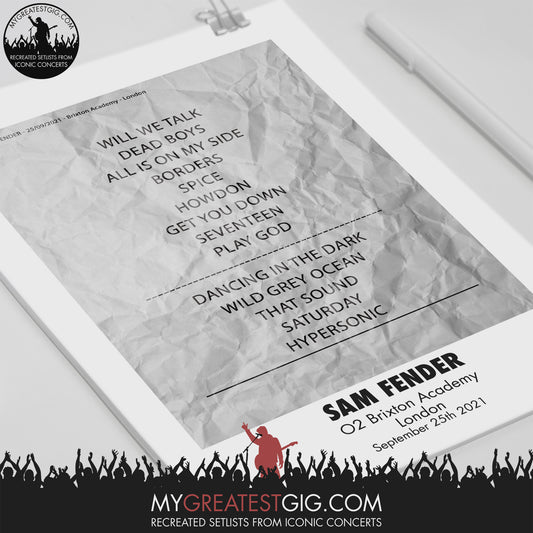 Sam Fender - Brixton - Sep 25th 2021 Recreated Setlist Poster