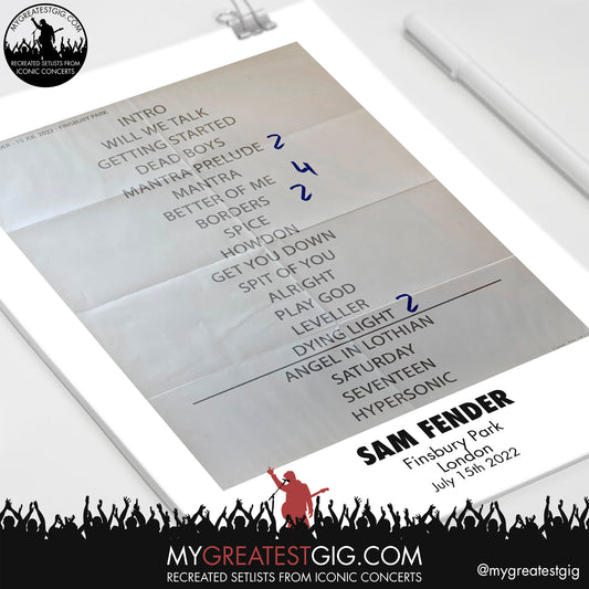 Sam Fender - London - Jul 15th 2022 Recreated Setlist Poster