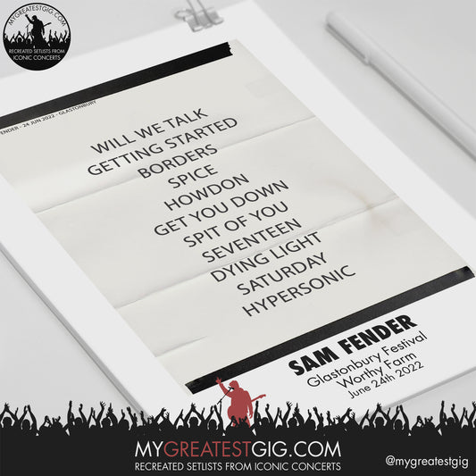 Sam Fender - Glastonbury Festival - Jun 24th 2022 Recreated Setlist Poster