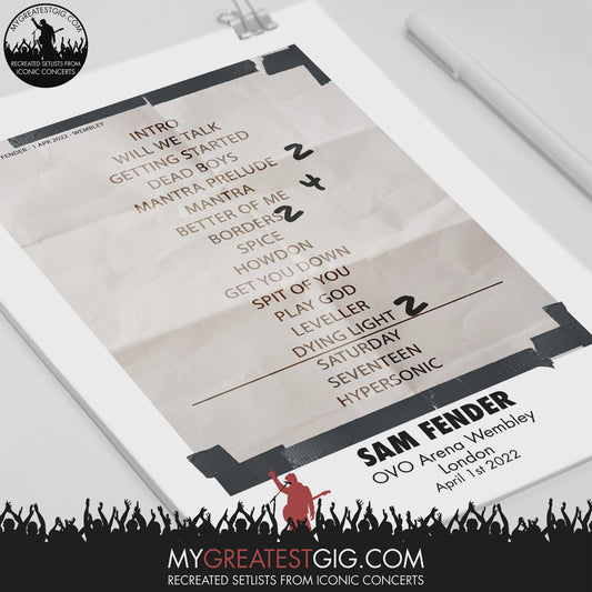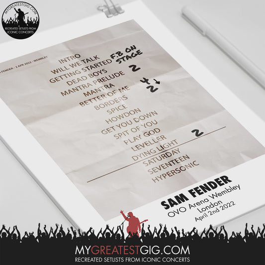 Sam Fender - London - Apr 2nd 2022 Recreated Setlist Poster