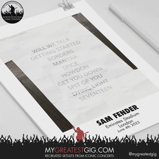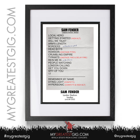 Sam Fender - London - Jun 4th 2022 Recreated Setlist Poster