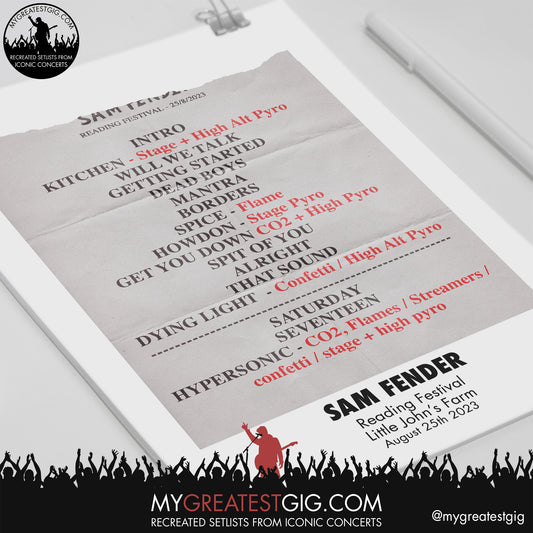 Sam Fender - Reading Festival - August 25th 2023 Recreated Setlist Poster