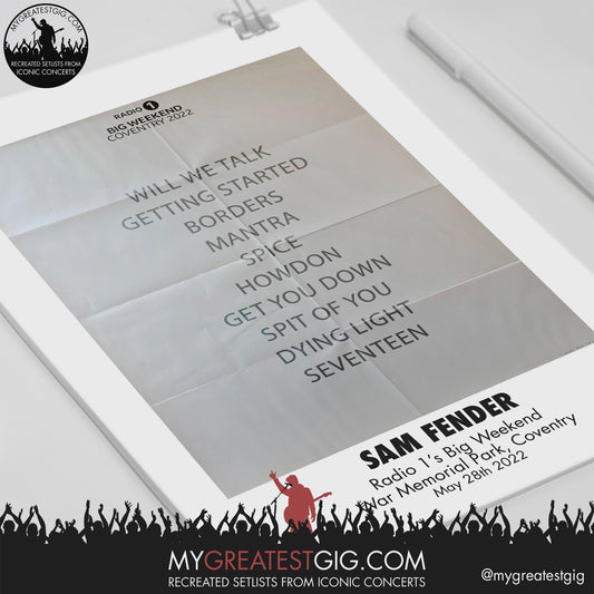 Sam Fender - Radio 1's Big Weekend - May 28th 2022 Recreated Setlist Poster