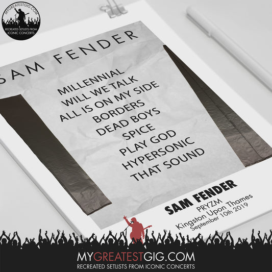 Sam Fender - PRYZM - Sep 10th 2019 Recreated Setlist Poster