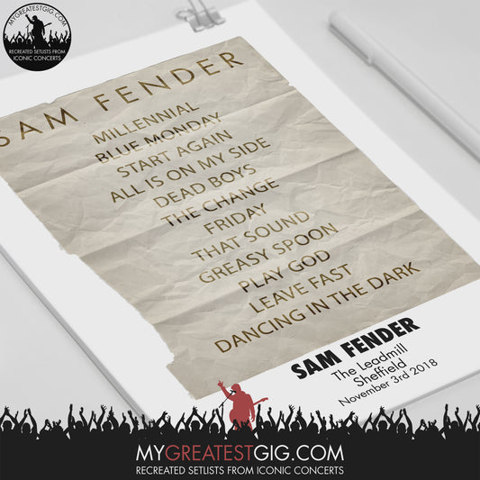 Sam Fender - The Leadmill - Sheffield - Nov 3rd 2018 Recreated Setlist Poster