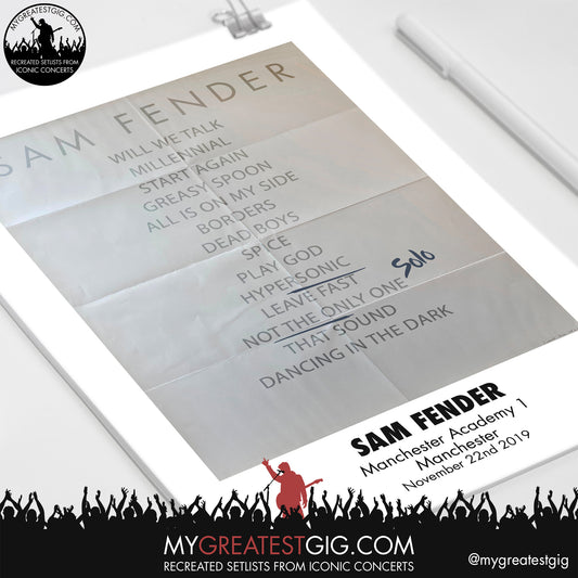 Sam Fender - Manchester - Nov 22nd 2019 Recreated Setlist Poster