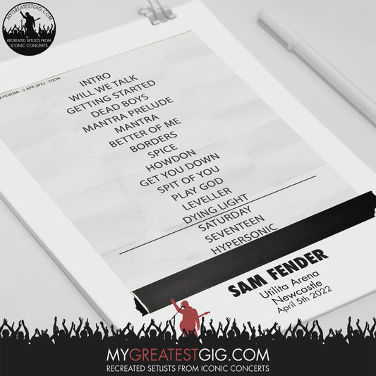Sam Fender - Newcastle - Apr 5th 2022 Recreated Setlist Poster