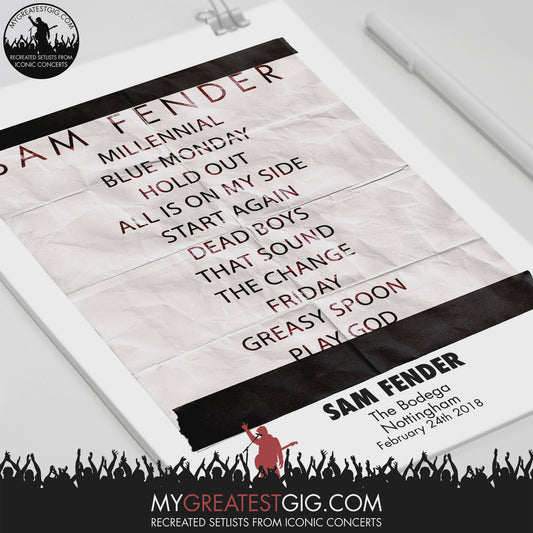 Sam Fender - Nottingham - Feb 24th 2018 Recreated Setlist Poster