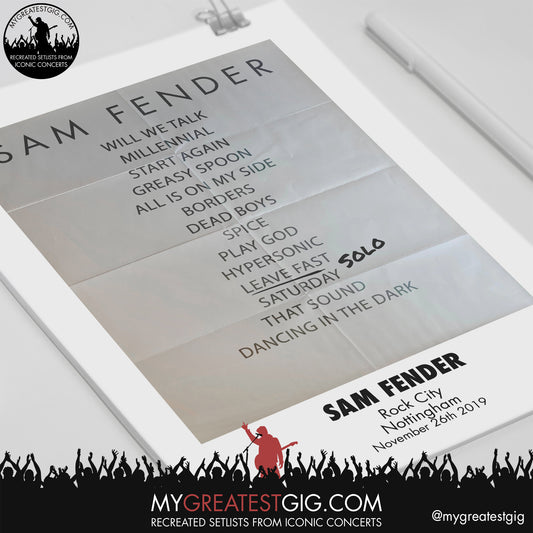 Sam Fender - Nottingham - Nov 26th 2019 Recreated Setlist Poster
