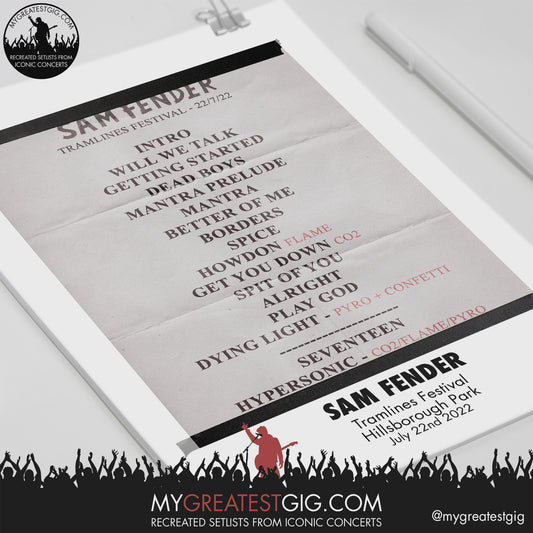 Sam Fender - Tramlines Festival - Jul 22nd 2022 Recreated Setlist Poster