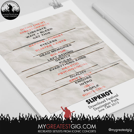 Slipknot - Download Festival - June 14th 2013 Recreated Setlist Poster