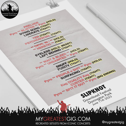 Slipknot - Download Festival - June 11th 2023 Recreated Setlist Poster