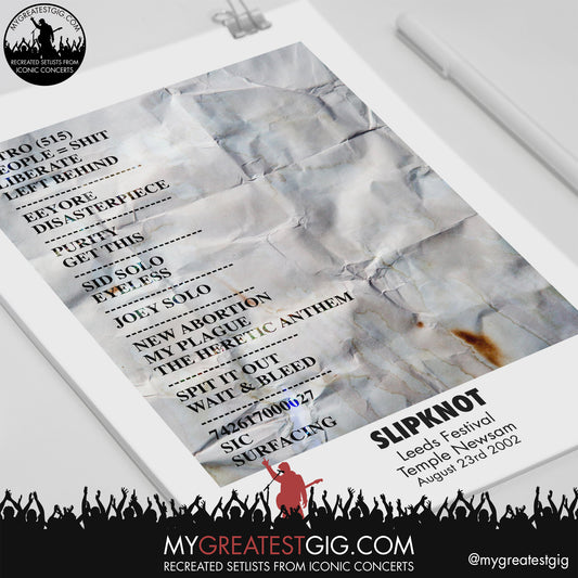 Slipknot - Leeds Festival - August 23rd 2002 Recreated Setlist Poster
