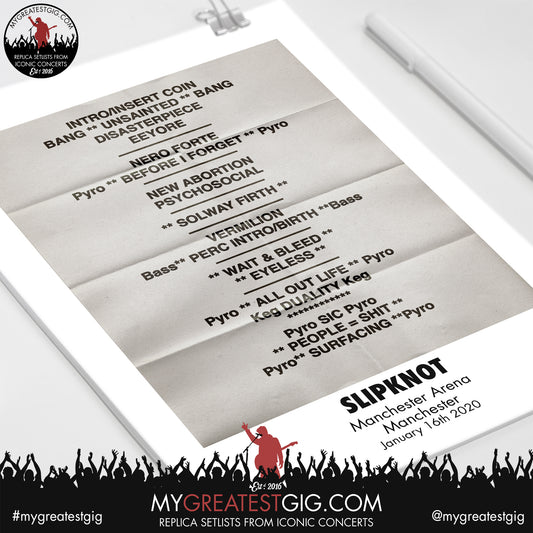 Slipknot - Manchester - January 16th 2020 Replica Setlist Poster
