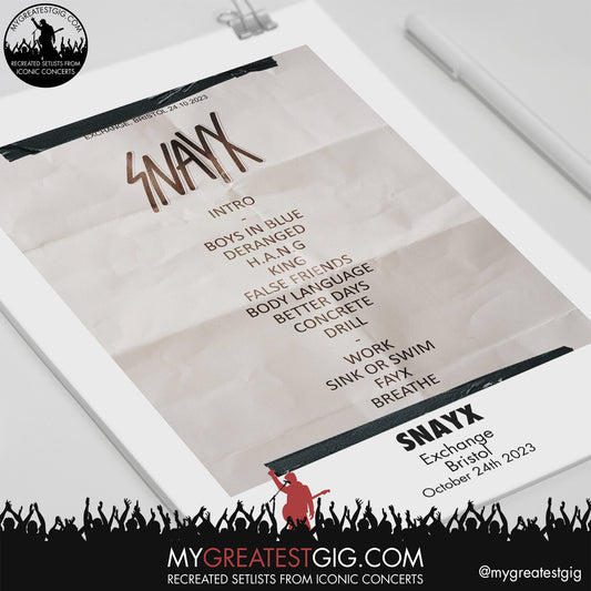 Snayx - Bristol - October 24th 2023 Recreated Setlist Poster