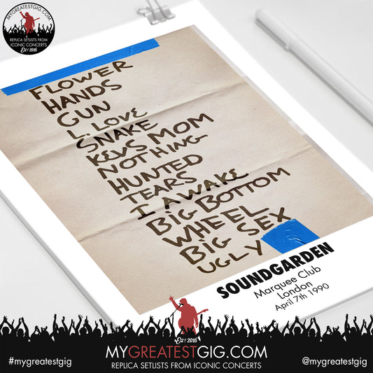 Soundgarden - London - April 7th 1990 Replica Setlist Poster