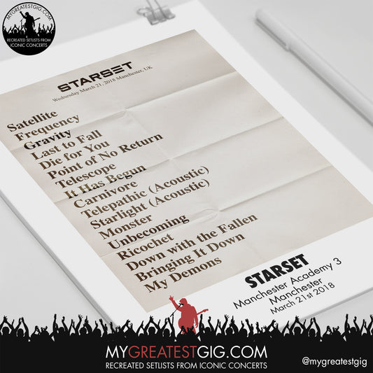 Starset - Manchester - March 21st 2018 Recreated Setlist Poster