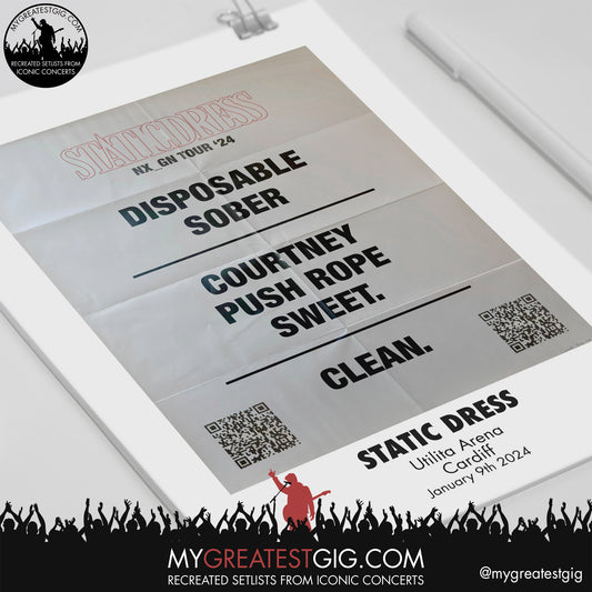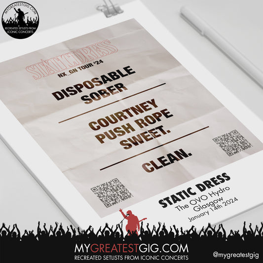 Static Dress - Glasgow - January 14th 2024 Recreated Setlist Poster