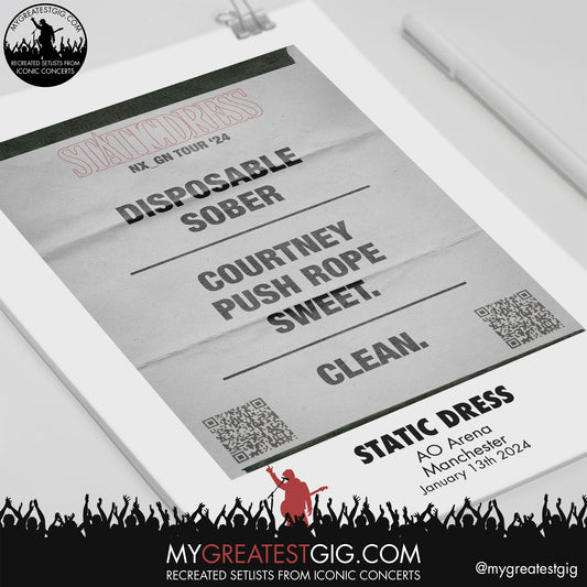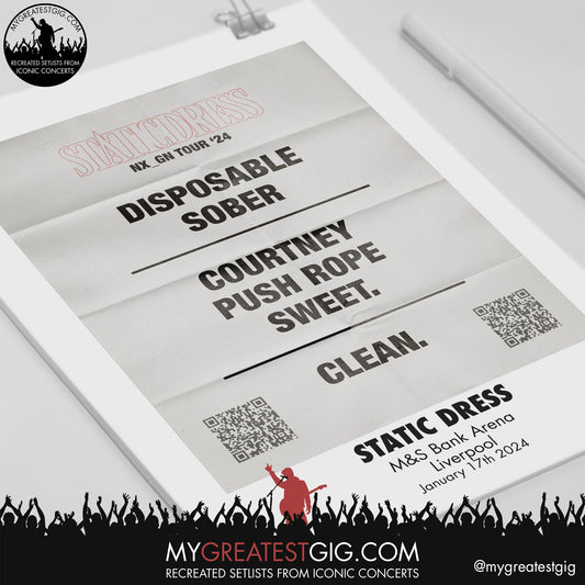 Static Dress - Liverpool - January 17th 2024 Replica Setlist Poster