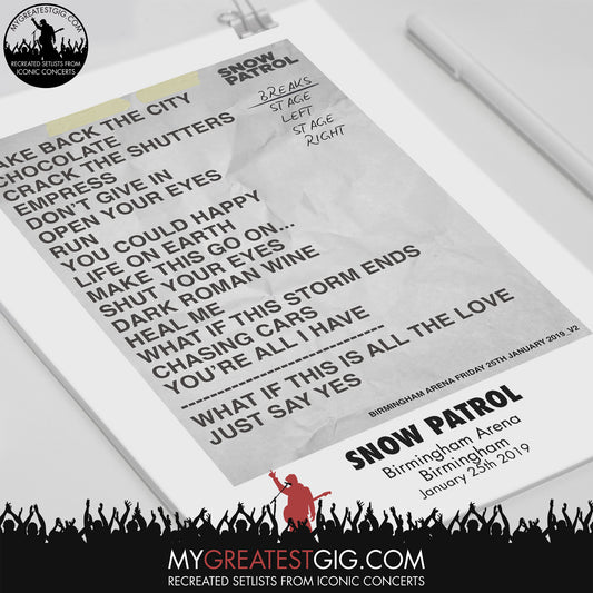 Snow Patrol - Birmingham - Jan 25th 2019 Recreated Set List Poster